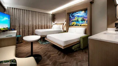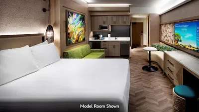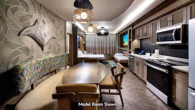 The DVC accommodations include deluxe studios in longhouse-style buildings, brand-new tower rooms, and the iconic overwater bungalows perched on Seven Seas Lagoon. Studios are among the largest in the DVC portfolio and feature kitchenettes, split bathrooms, and private balconies or patios. The bungalows offer two bedrooms, full kitchens, plunge pools, and direct views of the Magic Kingdom fireworks—making them one of the most luxurious stays on Disney property.